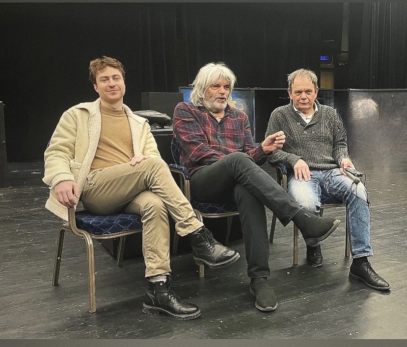 Képünön a Nemzeti Színházban a szerkesztő beszélgetótársaival, fotó: Földes Borbála